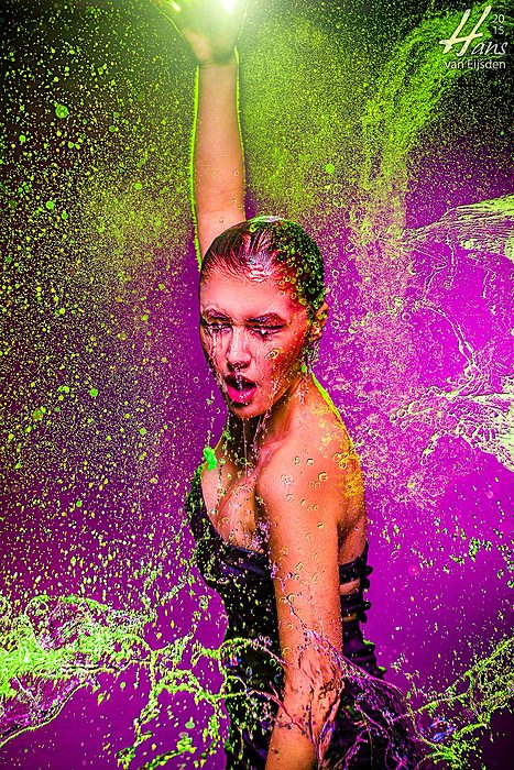 The flash durations of the back lights were 1/5250s and the flash duration of the key light (a beauty dish with grid) was 1/5000s. I used thumbtacks (drawing pins) taped on her head to let the water balloons pop. Thanks Ayse Aslan for the hair & makeup, for throwing those ice cold things and for giving us enough reason to laugh and keep laughing. 😉