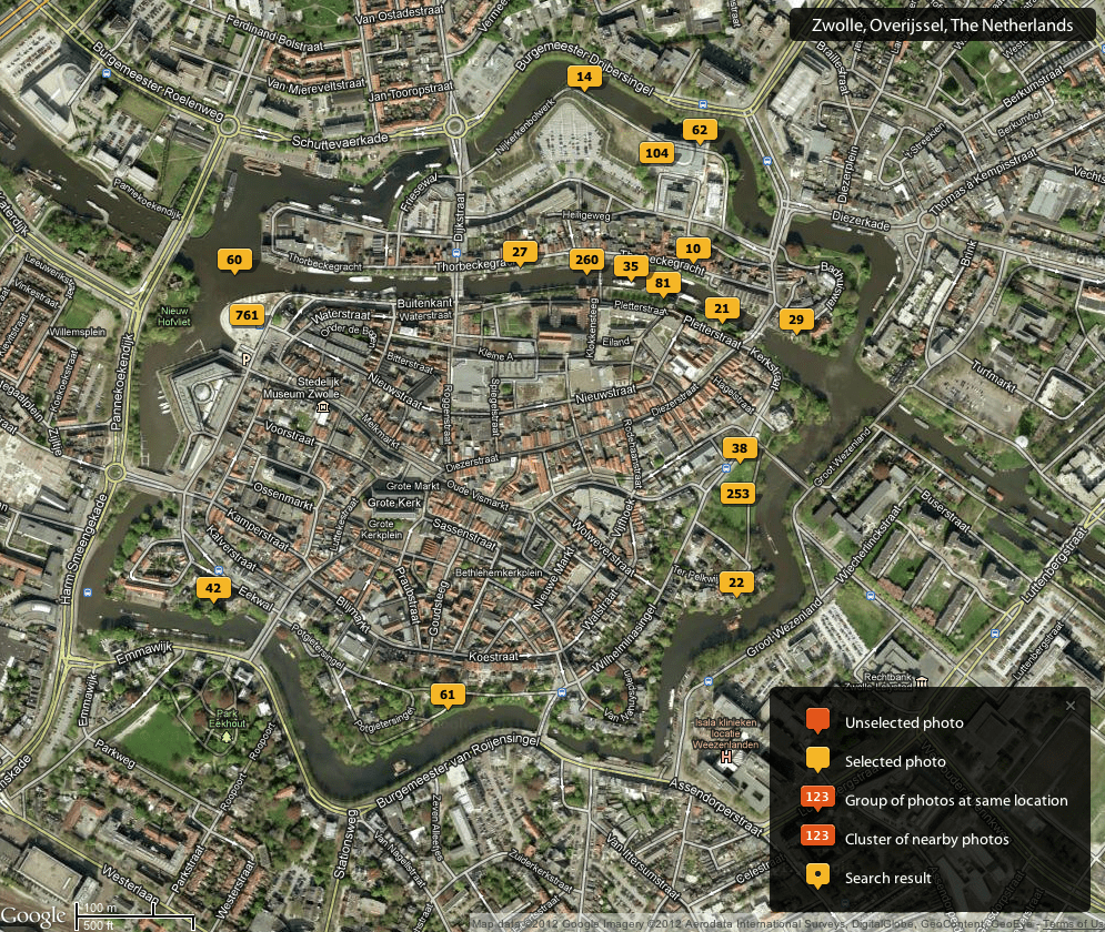 On the right you can see my Stadsfestival photo map. I’ve geotagged all the images and it’s nice to see how it reflects all the various locations on the map of Zwolle.